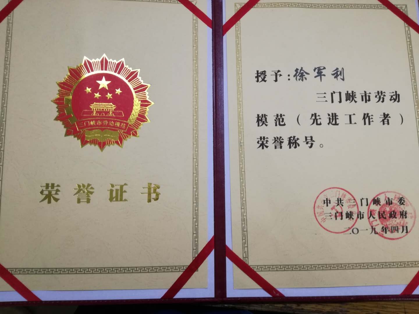熱烈祝賀昊博公司徐軍利同志獲得“三門(mén)峽市勞動(dòng)模范”榮譽(yù)稱號(hào)